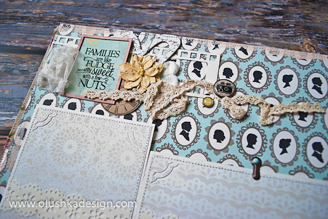 короче, альбом на 20 страниц, и аж 120 фоток, то есть на каждой странице по 2 раскладушки. девушка просила, чтобы в винтажном стиле, но у меня как-то рука не поднялась делать альбом для современных фоток в винтажном стиле. так что просто ограничилась семейно-домашней темой в оформлении, ну и цвета и элементы взяла так, чтобы было типа с намеком на винтаж:). девушка осталась очень довольна, впрочем как всегда:)
