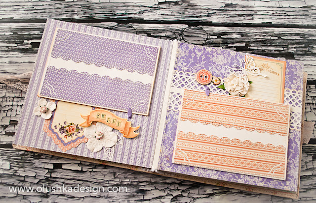 Оля, чудесный, очень нежный альбомчик. На почти всех разворотах разная по цвету бумага, но на каждом есть кусочек бумаги перекликающейся с другим разворотом и поэтому всё смотрится очень гармонично. И ещё, только сейчас обратила внимание как ты делаешь подложку под фото, в смысле дыроколишь уголки не полностью на прямоугольнике под фото, а на полоске верх и на другой полоске низ. Это так удобно и красиво. Обязательно возьму на вооружение.